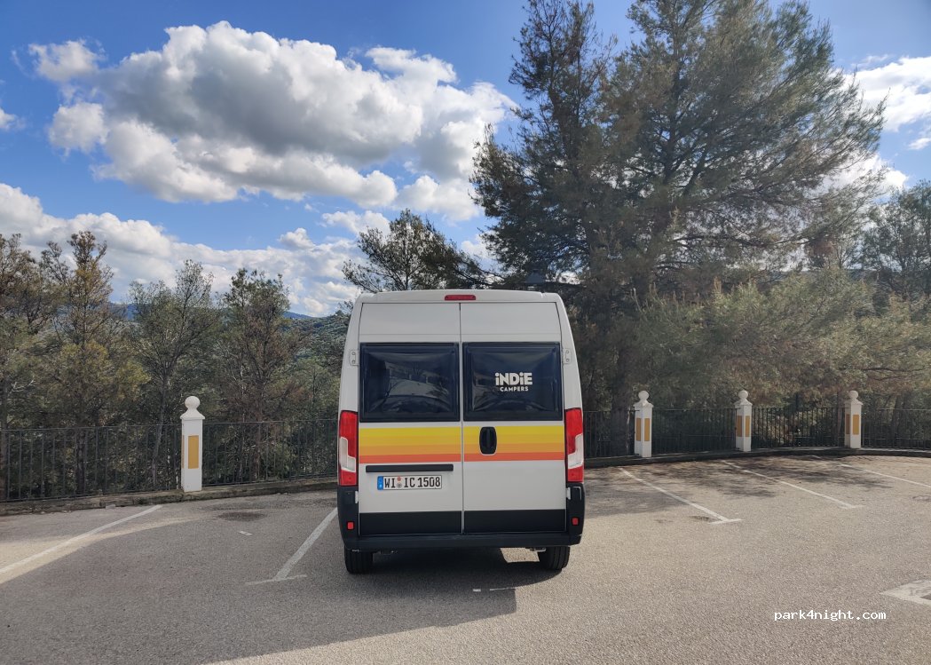 It was a great spot to visit Iznájar. The parking lot was empty, so we parked in the middle to leave space for others. It was very quiet, but we didn't sleep there because it was a bit slanted.