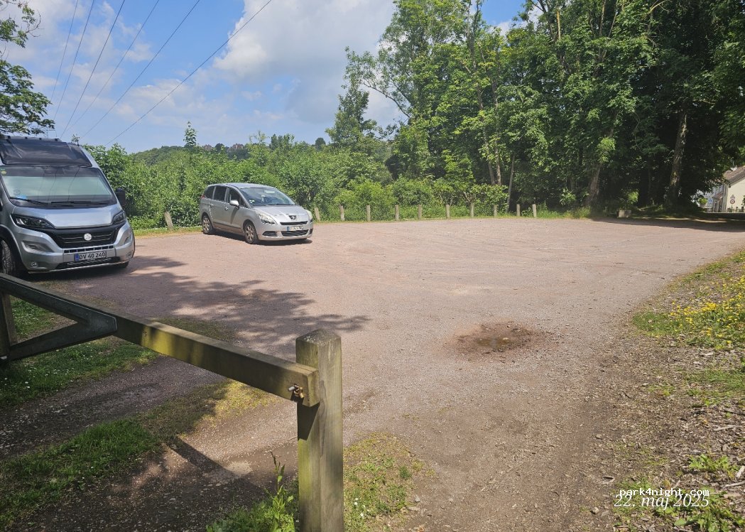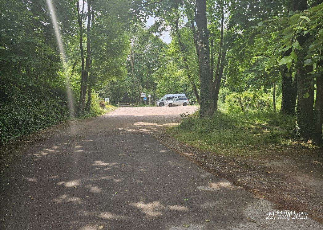 Very sharp turn to into the parking lot, so slow down below the already 30 km/h. Dirt ground. Very green and pleased view. Space for 4 motorhomes, but also many cars for hiking with dogs and for the big playground. No signs of forbidden to stay over night! No hight limit.