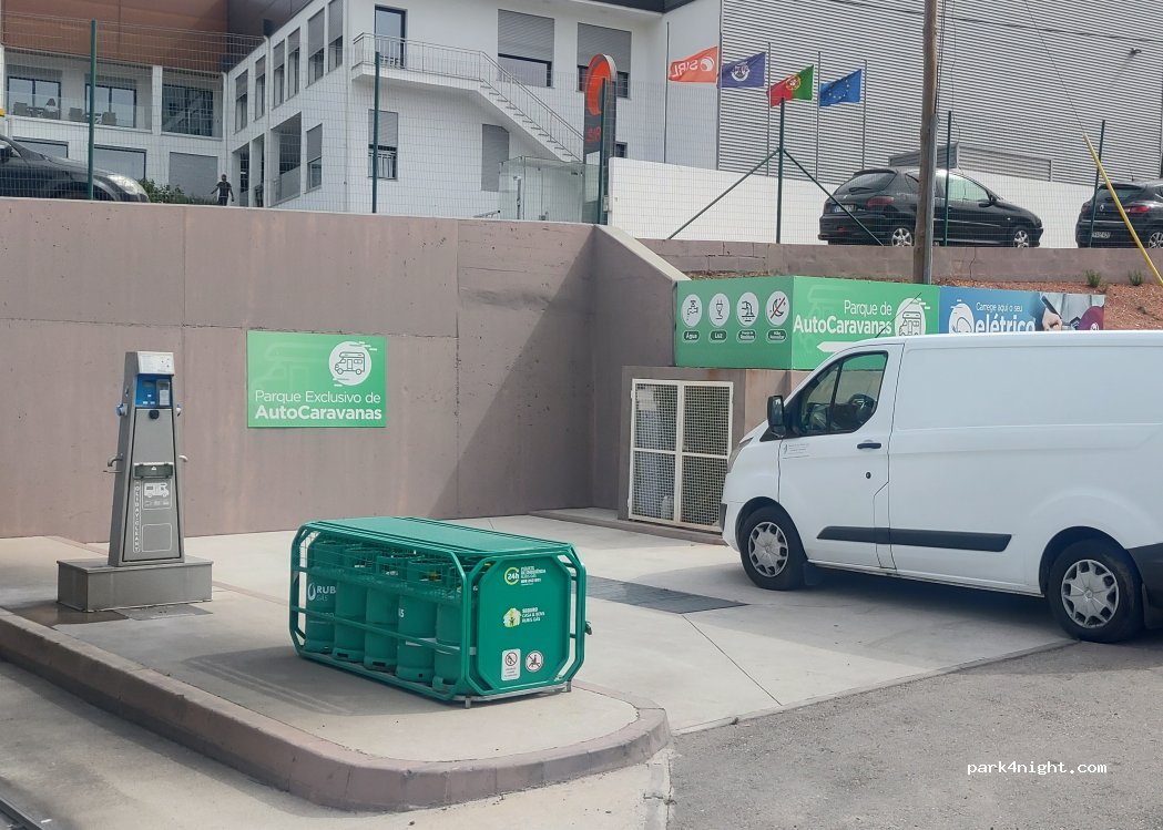CC service area, within the grounds of the shopping center and service station (Penela Center), paying drinking water, free black water and waste water discharge. No overnight parking.