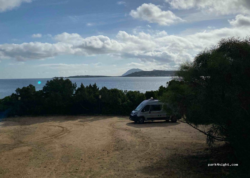 Un endroit très calme, c’est le parking de la plage, avec un panneau « camping interdit », et comme le reste de la Sardaigne, à compter du 1er juin, je ne m’y serais pas tenté, nous y étions le 19 mai avec un autre camping-car, nuit très calme et accès direct à la plage à quelques mètres…