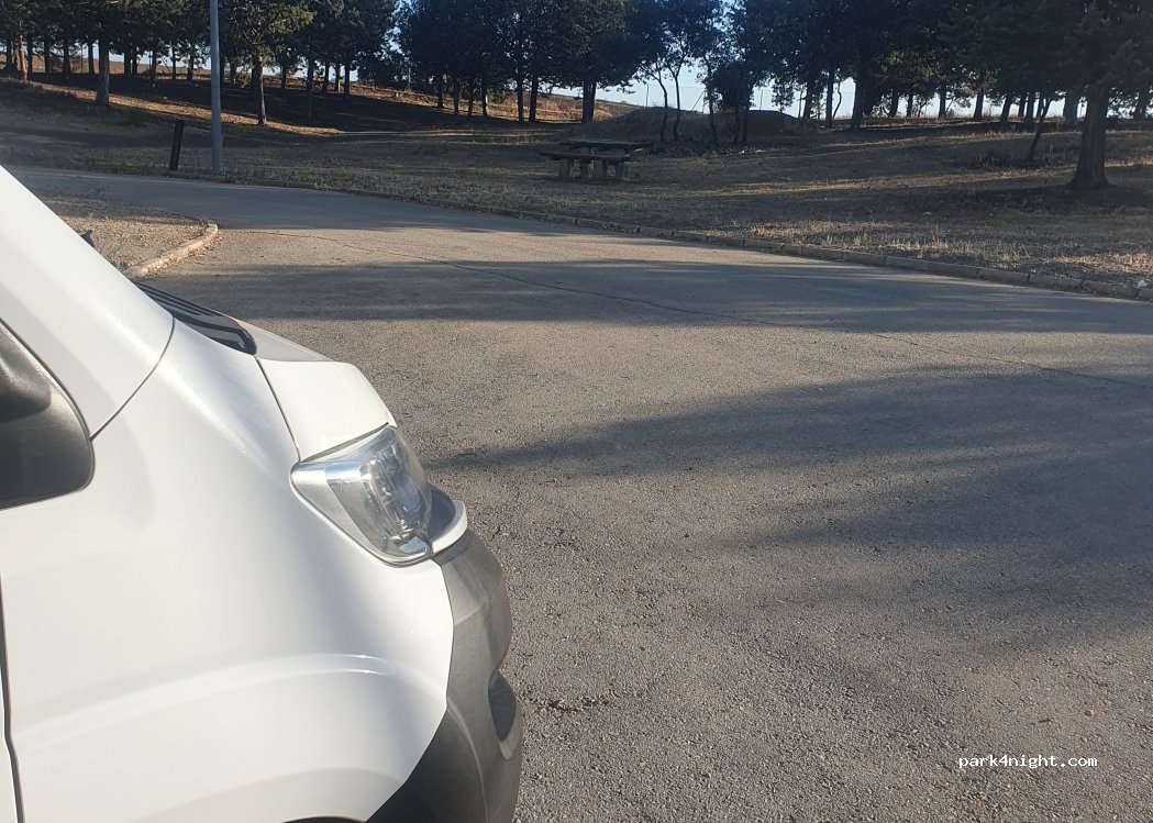 Hemos parado a cenar, hay muchos bancos con mesas para hacer picnic. Hay tres grifos y zona de barbacoas. Vino la policía pero no nos dijo nada. No nos quedamos a pernoctar.