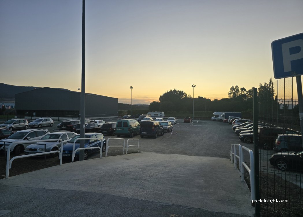 Parking de gravilla muy bien nivelado, fácil acceso y tranquilo. Al lado de un parque muy bonito que se llama “Parque de los Sentidos”. Perfecto para descansar y dormir. Mucho sitio para aparcar.