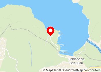 Parkeren aan de rand van het stuwmeer van San Juan, goede toegang, verschillende plaatsen onderweg, waarschijnlijk druk in de zomer en minder rustig; bars en restaurants in de buurt, omgeven door natuur en water waar het mogelijk is om te zwemmen.