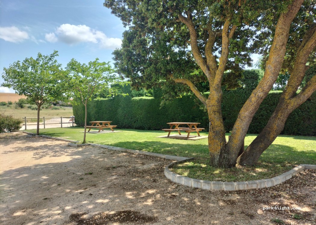 Área con todos los servicios y muy tranquila . Las piscinas municipales están alado, cosa que en verano tiene que ser de agradecer. Junto a la vía verde, por lo que tienes muchas posibilidades para hacer andando o en bici. También tiene mesas para poder comer en la calle.