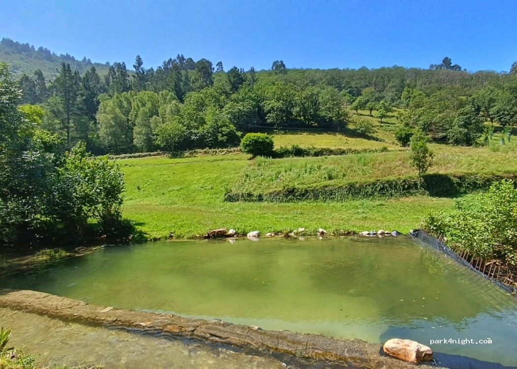 It is the sports court of the beautiful town of Tuña, an exemplary town of Asturias in the year 2000. This place is used as a general rule for sporting events and outside of them, which is most of the time for car and van parking. waiting for the ac area that is projected right in front to be built. The land is paved and completely level, it is inside the town but not right in the center, secluded but connected and has beautiful views of the Asturian mountains. From this point we have access to all kinds of mountain routes on foot and by bicycle, not in vain, Tuña is part of the Gravity Zone BTT Center and there are also multiple sites of cultural interest, such as the birthplace of Riego, the Merilles dolmen and numerous palatial houses. Tuña is also one of the towns with the most hórreos and bread baskets in Asturias. Undoubtedly a haven of peace, but if you want to eat, dine or have a drink, you have the Casa Pipo Restaurant where motorhome drivers are very well received.