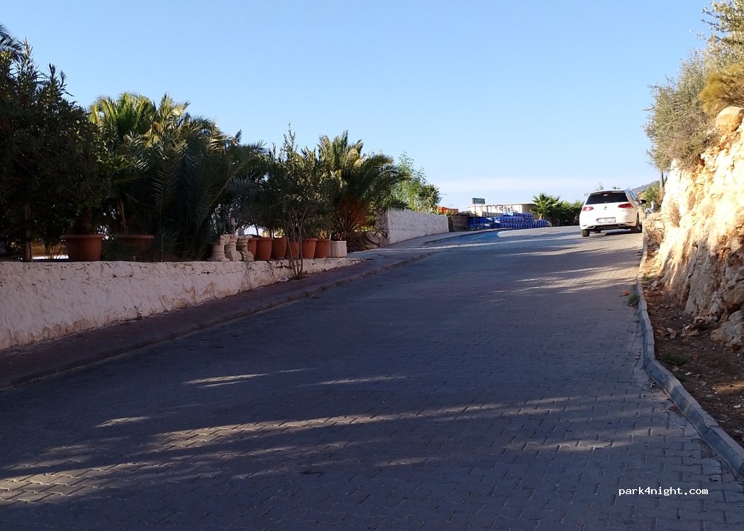 We stayed 1 night. We didn't go up the hill all the way. Plenty of parking space ( in November) but the cars and motorbikes were speeding around us till midnight. Very quiet after and nice weather view.