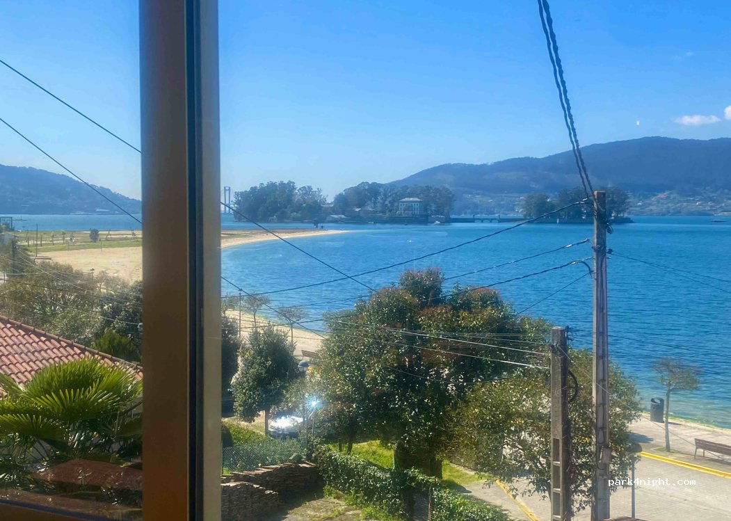 We were very lucky and found a space. Once it got quieter after 10pm we were able to straighten the van and had a stunning night overlooking the beach. Showers 10m away and a nearby bar. But the road here is very narrow and you must choose the right one or risk getting stuck! We left before 10am as it gets very busy during the day and at 6.4m we overhung the road.