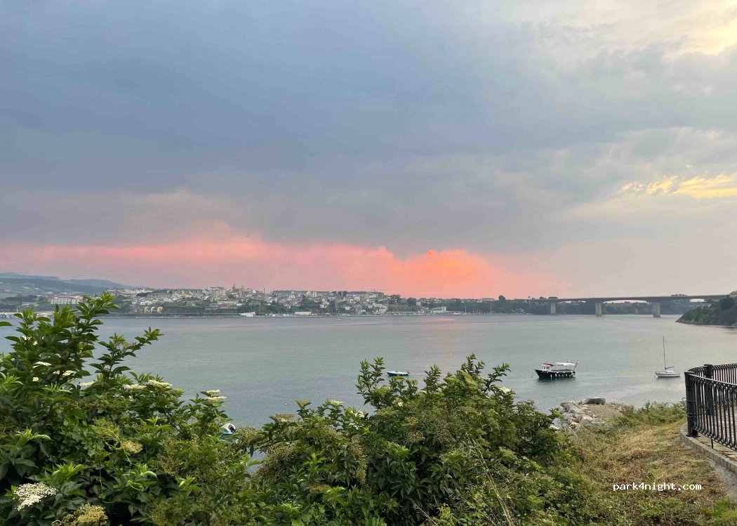 No vimos ninguno cartel prohibido de quedarse por la noche. Hay restaurantes alrededor y había una apuesta de sol maravillosa.