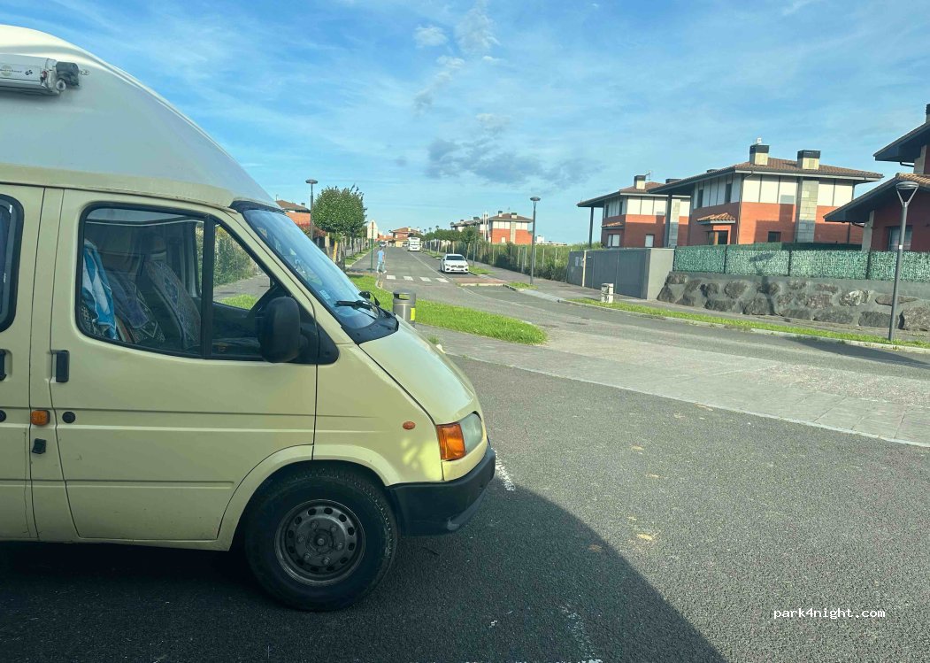 Half of the parking lot is blocked off by concrete barriers - young people were playing ball here. Were playing ball here. There are also many parking spaces along the streets around this parking lot, mostly with a slope. Seems to be a quiet residential area. We only spent one night here because of the proximity to the airport.