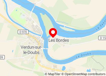Petit parking sans interdiction. Toilettes sèches à 50 m. Promenade sur l'île du Château (passerelle). Confluence de la Saône et du Doubs. Verdun sur le Doubs à 300 m.