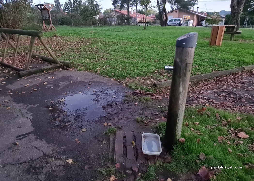 Milieu d un lotissement, quelques tables de picnic. Le point d'eau est utilisable essentiellement après l hivers