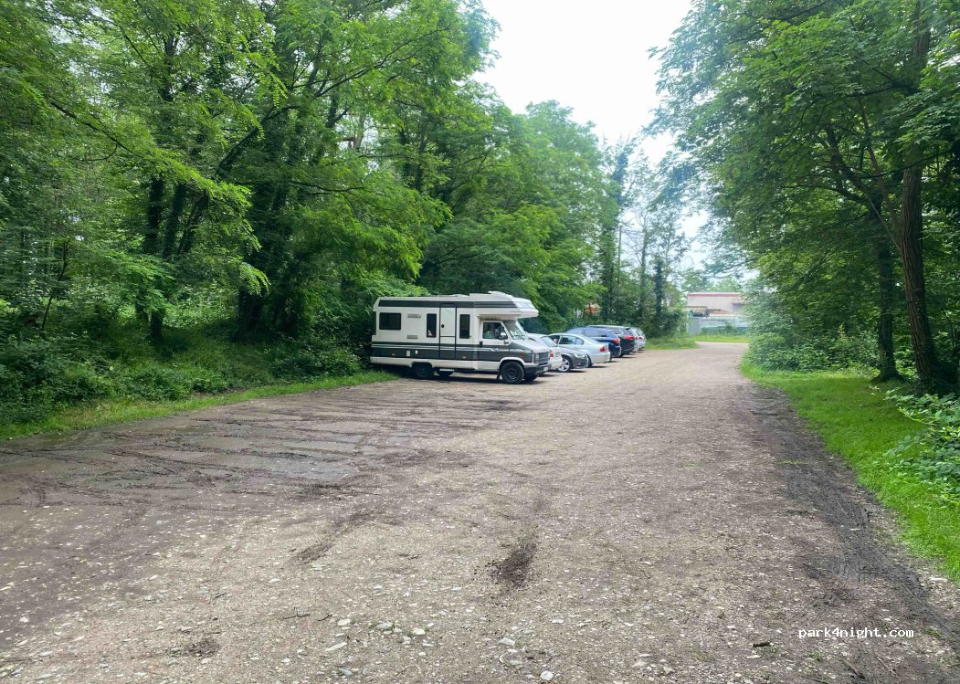 Calme, parfait pour une nuit. Un peu boueux sur les bords. Ne convient pas aux camping-cars hauts et longs (arbres)