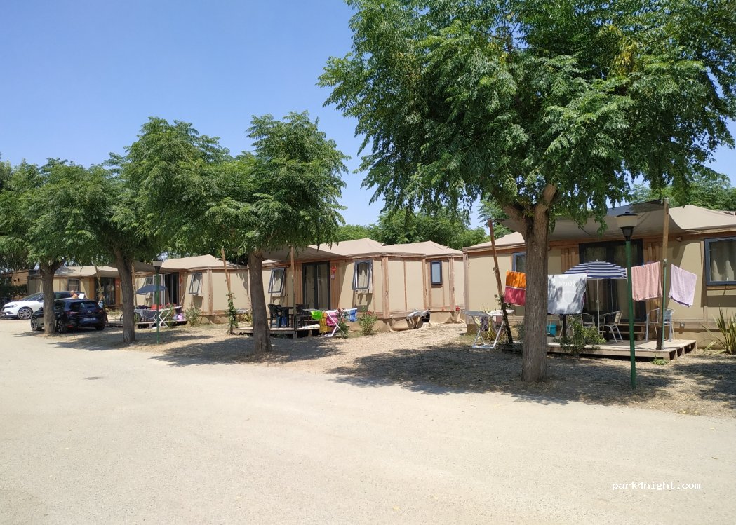 Campsite of the French chain CapFun. Large swimming pool and lawn. Fun on the slides for all ages. Plots with little shade and little privacy from each other but spacious, with electricity and water. Gray and black casting. Animation at 10. Team of lifeguards all super attentive, since the campsite is so big, there are a lot of people in high season. Supermarket inside the campsite expensive, but there are several around. Spacious and comfortable bathrooms. Washer, Dryer, Pool Bar Fair prices although I can't say what the quality is. Your children will make friends yes or yes, there are many of all ages.