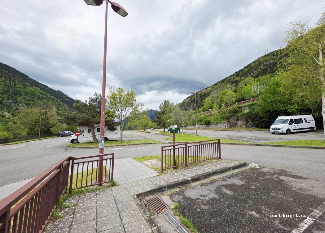 Aunque pone que no se puede pernoctar, el parking está lleno de caravanas y camper por la noche. Es un sitio ideal para coger el bus que sube a Monte Perdido