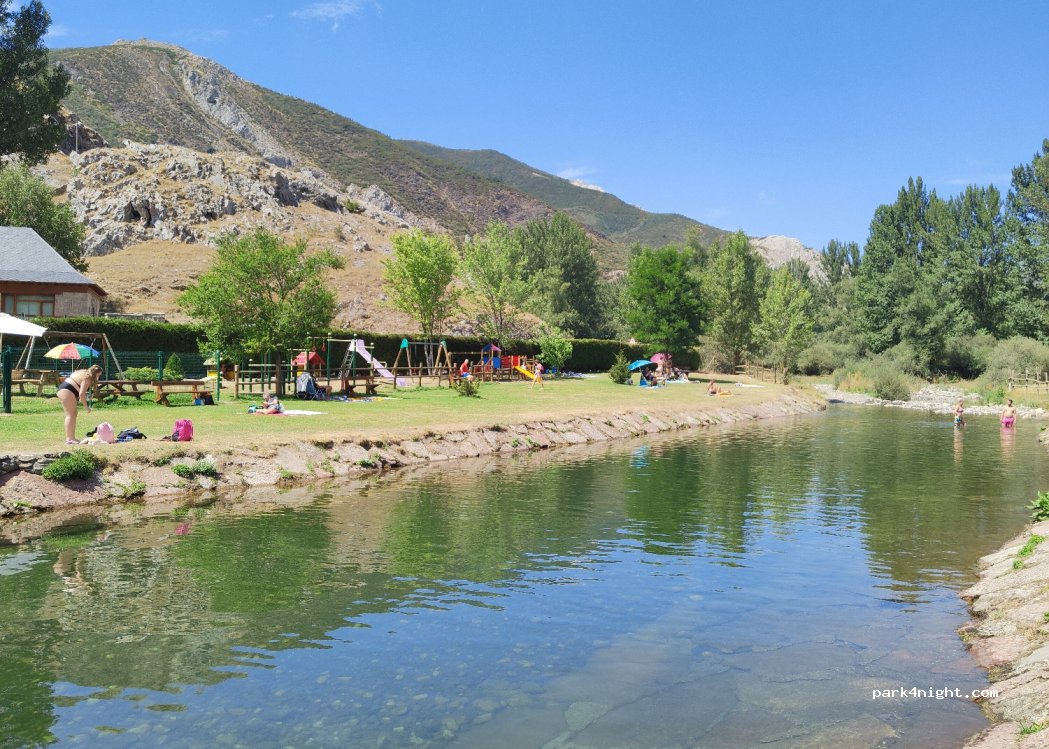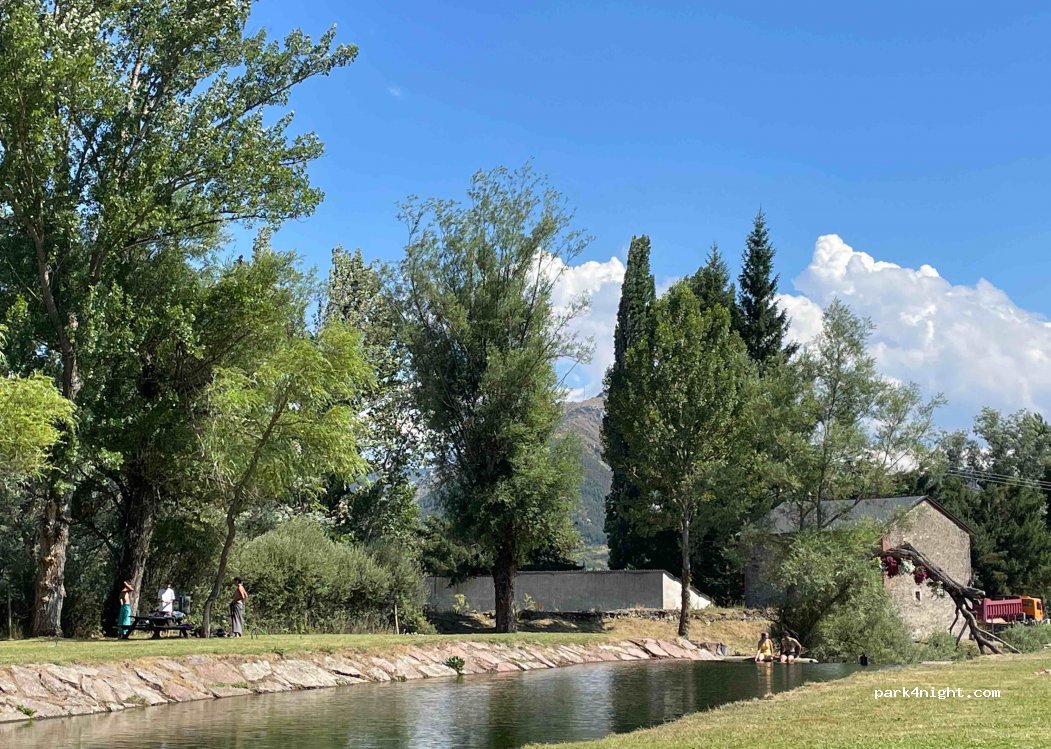 Lugar perfecto para passar el dia. Piscina fluvial, parque y bar. Pernoctamos al lado de la carretera. Muy tranquilo.