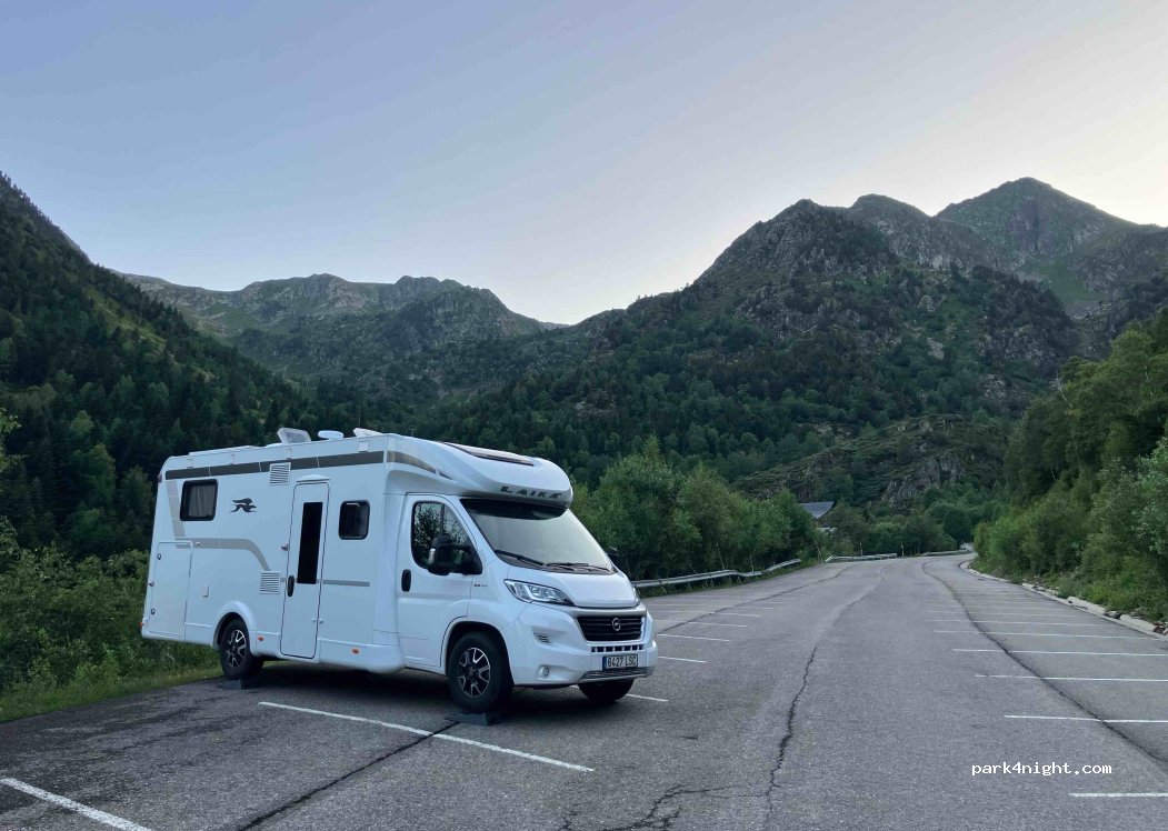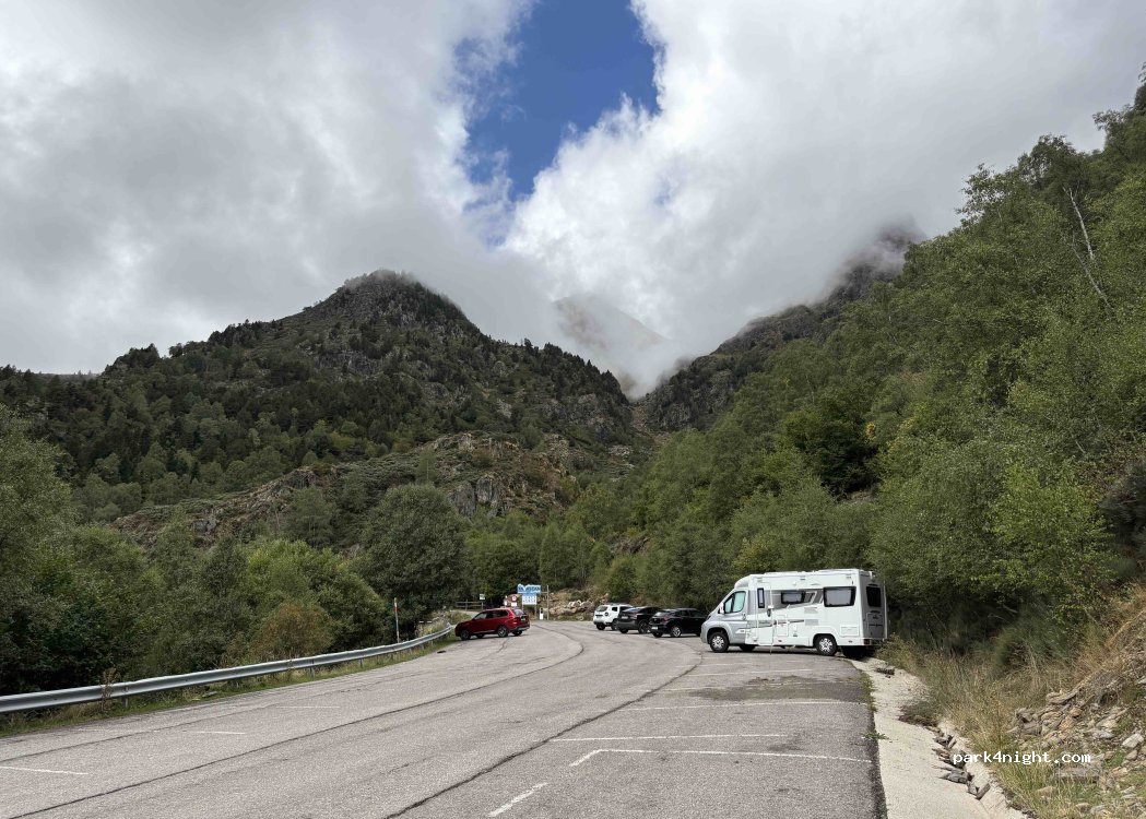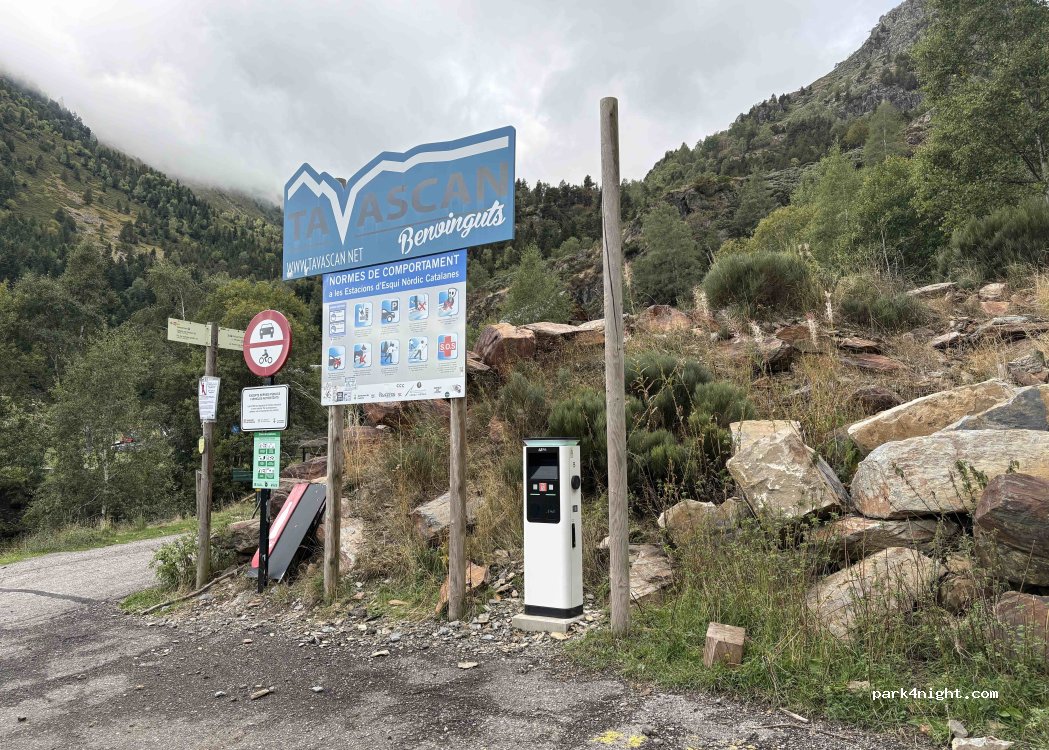 Parking at the Tavascán ski resort. There's a sign indicating that parking is only permitted, but not camping, so you know you can't put out chairs, tables, etc.