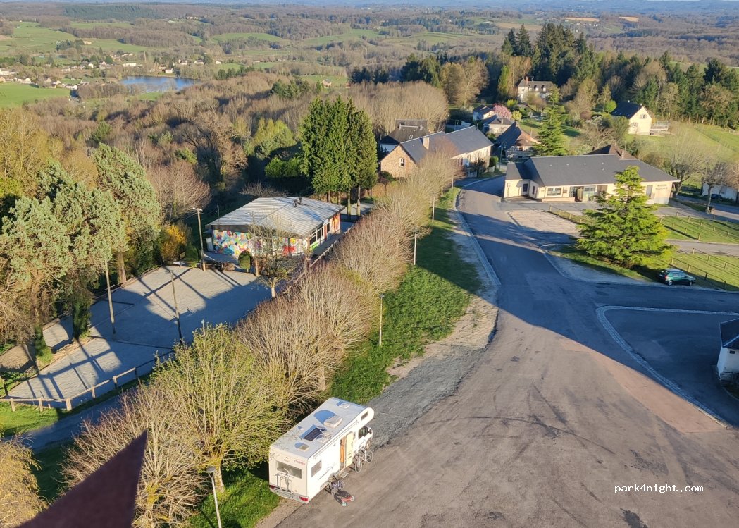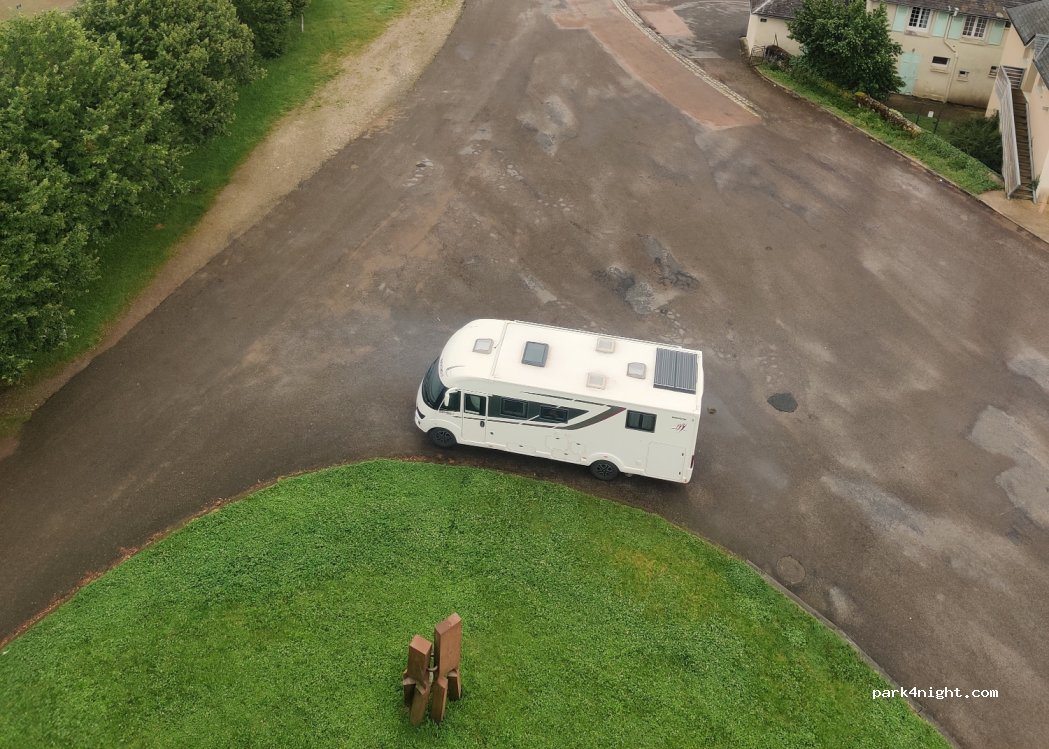 Parked for the day. Would have been happy to spend the night but needed to move on. The workmen's menu in to logis hotel at the car park was great. 4 courses with wine 14. euros.