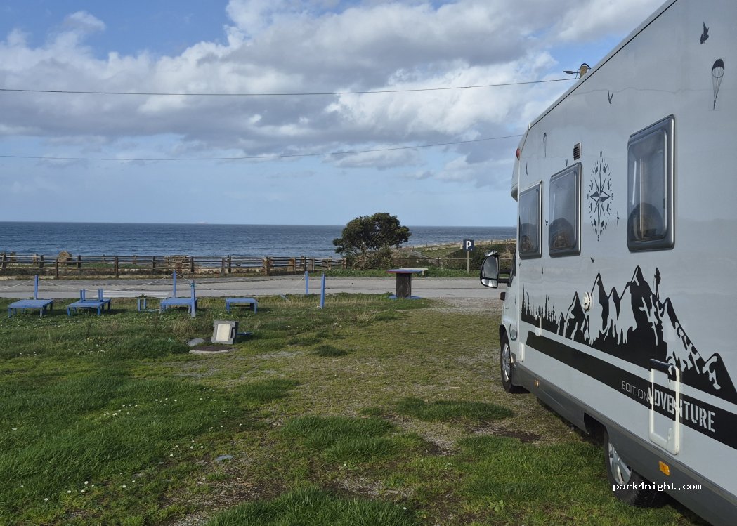 Free parking at the beach bar Praia Dos Castros. The field is very large and has different entrances. The owner of the bar, Diego, doesn't mind that we spend the night in the campa (it's a parking lot, not a campsite). Sea views and very close to Las Catedrales Beach. In low season I don't know if the beach bar will be open.