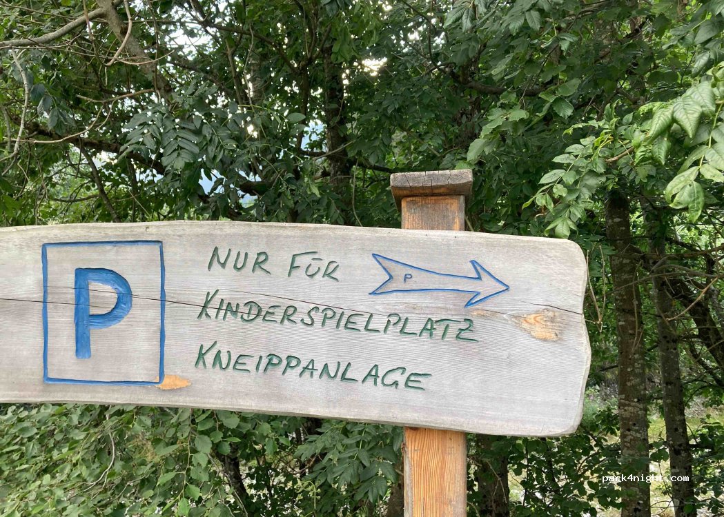 Ruhiger Parkplatz am Ende einer Straße. Öffentliches wc mit Spielplatz und Kneipanlage.