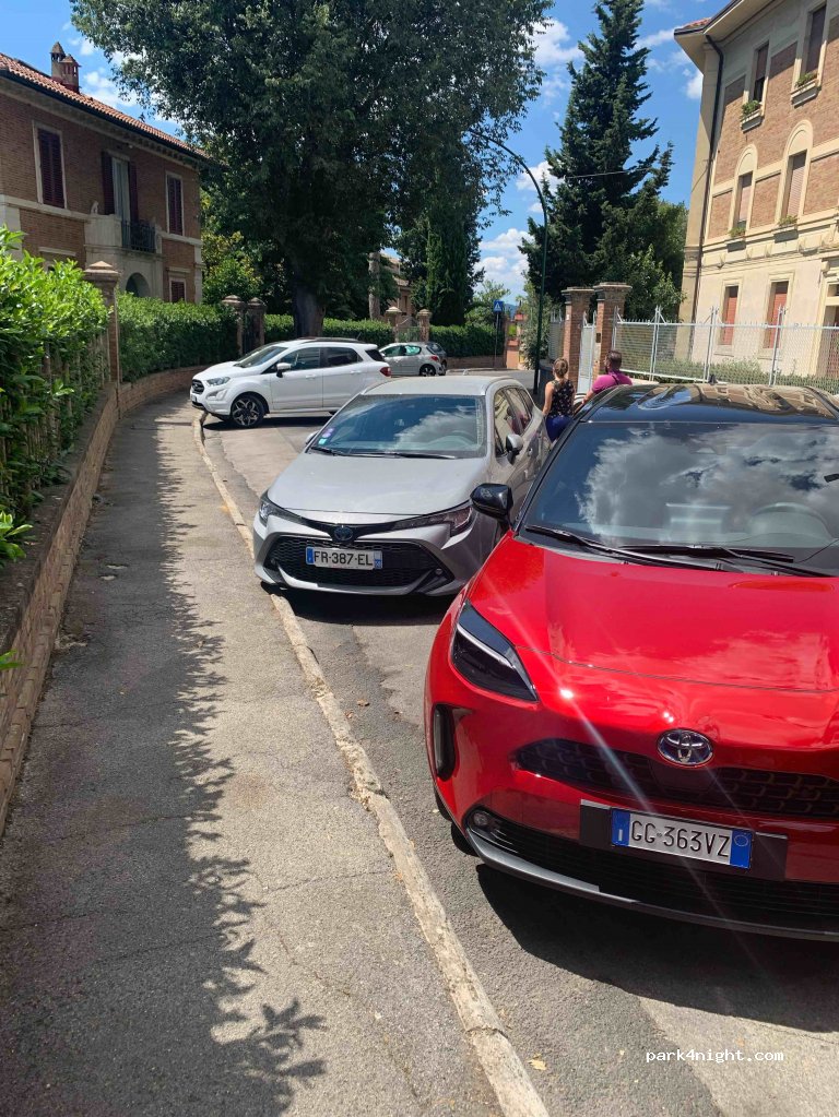 Free parking space in a quiet street. Very good for visiting the city. Prohibited for vehicles over 7.5 m