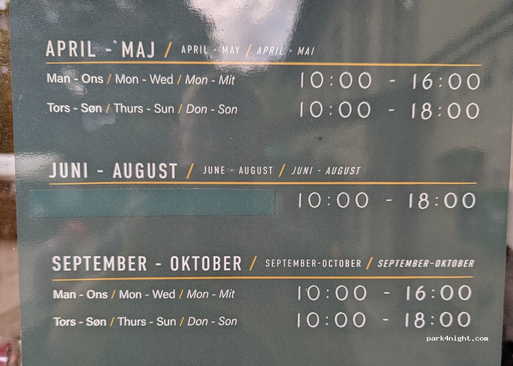 Prachtig parkoers! Schitterende toren !maar om te overnachten op de parking moet je 260 Deense kronen heel jammer dat dit negens vermeld staat en ook per dag 69 Deense kronen om gewoon te parkeren!