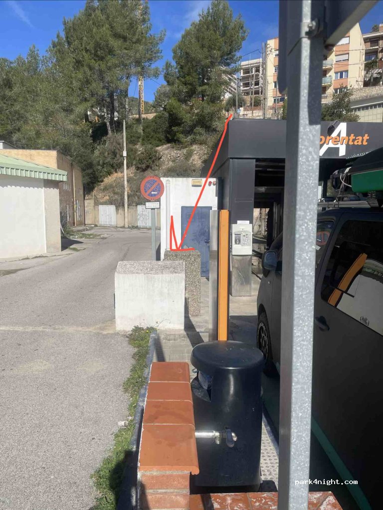 Attention ! Je pense que ce n'est pas une aire de camping car mais juste un stationnement (qui est par ailleurs souvent squatter par des voitures). Parfait si vous allez à Barcelone (bus e17) mais impossible de passer la nuit : parking en pente, beaucoup de circulation, éclairage ...