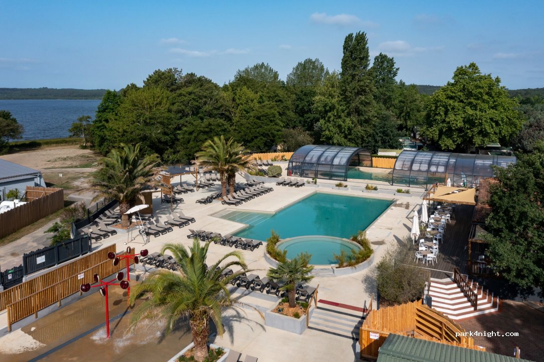 Campsite "Le Col Vert****" located on the shores of Lake Léon. Pleasant reception. Pitches of at least 100 m2. Two swimming pools, one indoor the other outdoor. Many games for children. Supermarket in the campsite, a snack bar and a restaurant. .