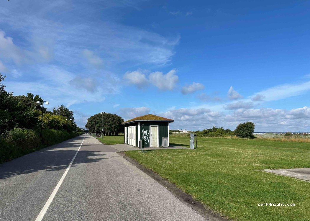 Haben eine Nacht dort verbracht und uns gut gefühlt. Toiletten in der Nähe, morgens sauber, abends naja. Frischwasser am Strand, Müllentsorgung, wunderschöner Spaziergang am Strand. Nachts etwas lauter, wegen ein paar Jugendlichen, war aber in Ordnung. Mit dem Bus nach Malmö, kein Problem.
