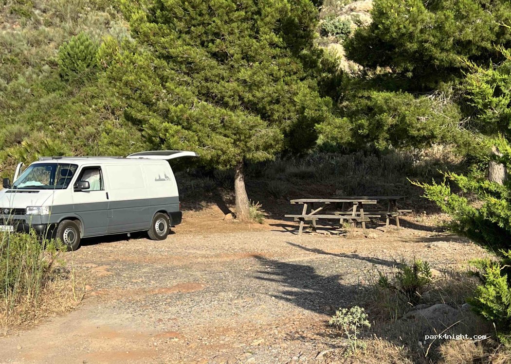 Picnic area ( EL Chuflas ) with good views, two pine trees with good shade and four tables. Good hiking trails start from here. No services.