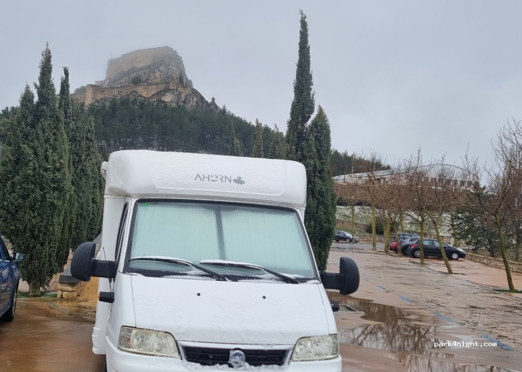 Buen sitio para visitar el pueblo. Parking amplio para poder estacionar la AC. Precioso pueblo medieval, amurallado, se puede visitar el castillo y el museo de dinosaurios . Las calles tienen un encanto especial. Comimos en el restaurante "la sastrería", muy recomendable, trato amable y buena comida.