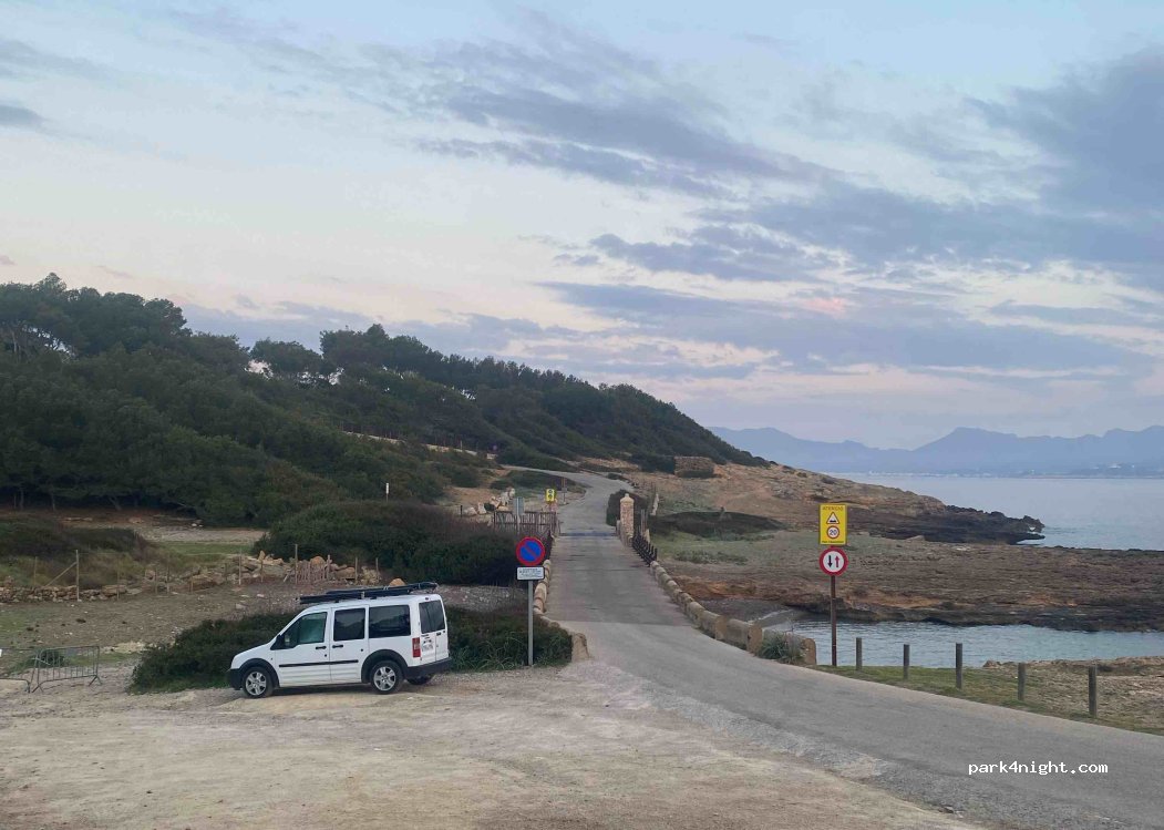 Petit parking pour accéder à la plage, endroit peu fréquenté. Si vous mettez la camionnette en dessous, vous pouvez à peine être vu de la route un peu incliné mais pas trop Le matin, ils sont venus d'une activité de kayak mais très sympathiques et nous avons tous essayé de ne pas nous déranger