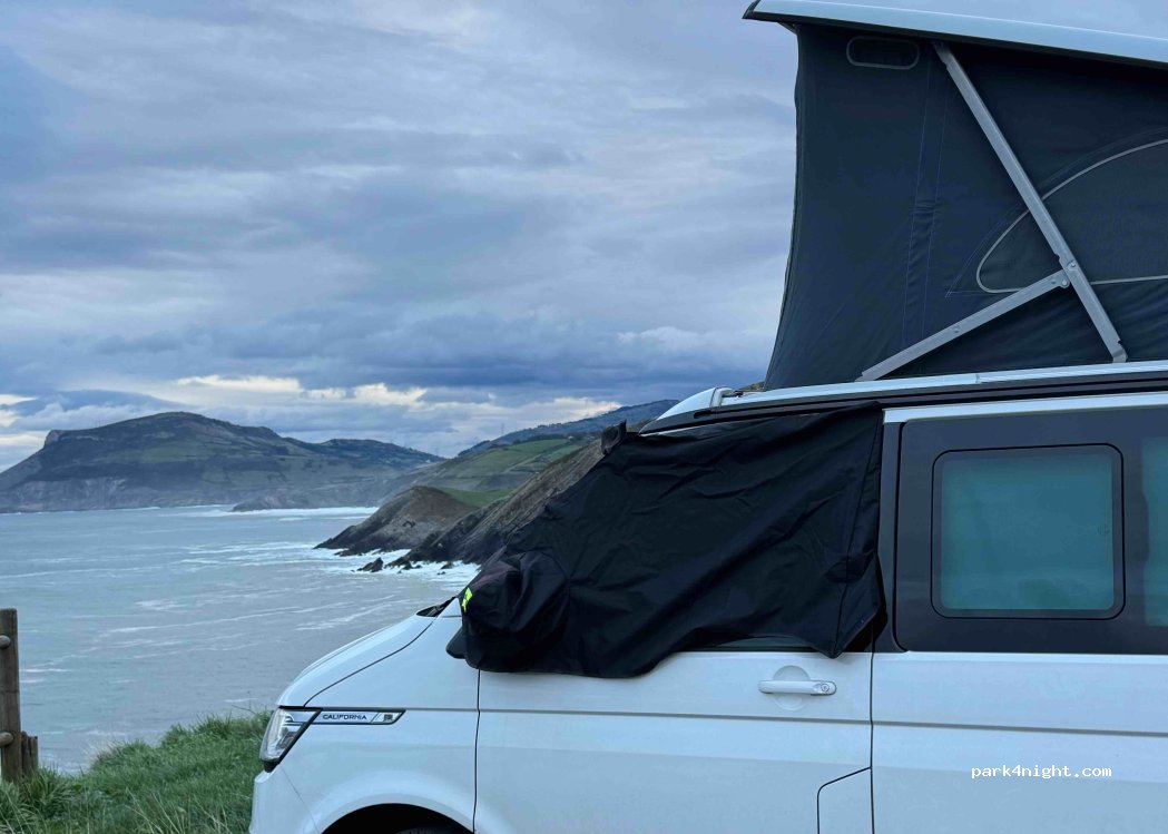 Unpaved parking at the start of a coastal walk. no services, motorway not far away. to park and take a walk Excellent, I did not see any prohibitions and next to us there was a van that seemed to have spent the night here.