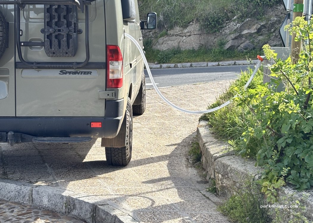 Comodissima per parcheggiare e ben collocata. Unica critica: il getto non ha una pressione molto alta e abbiamo impiegato un bel po' di tempo a riempire. Inoltre, l'attacco del rubinetto è senza filettatura e bisogna tenere ferma la pompa manualmente. In compenso, ci si gode un bellissimo panorama dall'alto.