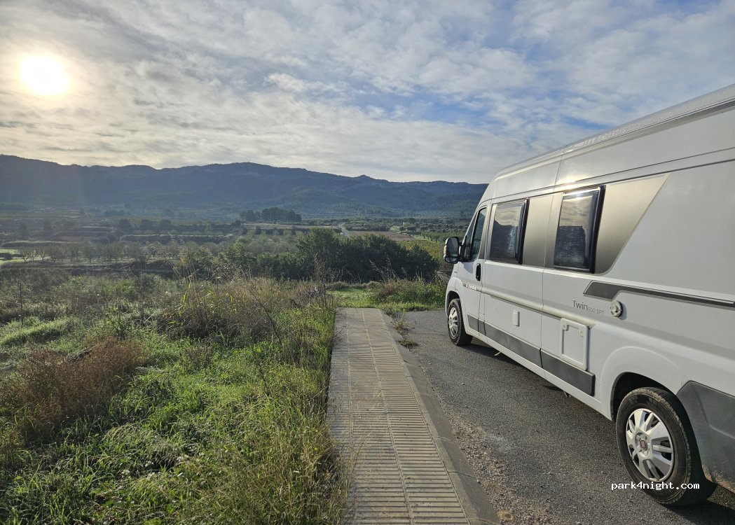pàrquing esfaltat molt aprop del poble, ideal per visitar el poble vell. hem dormit molt tranquils I molt bé.