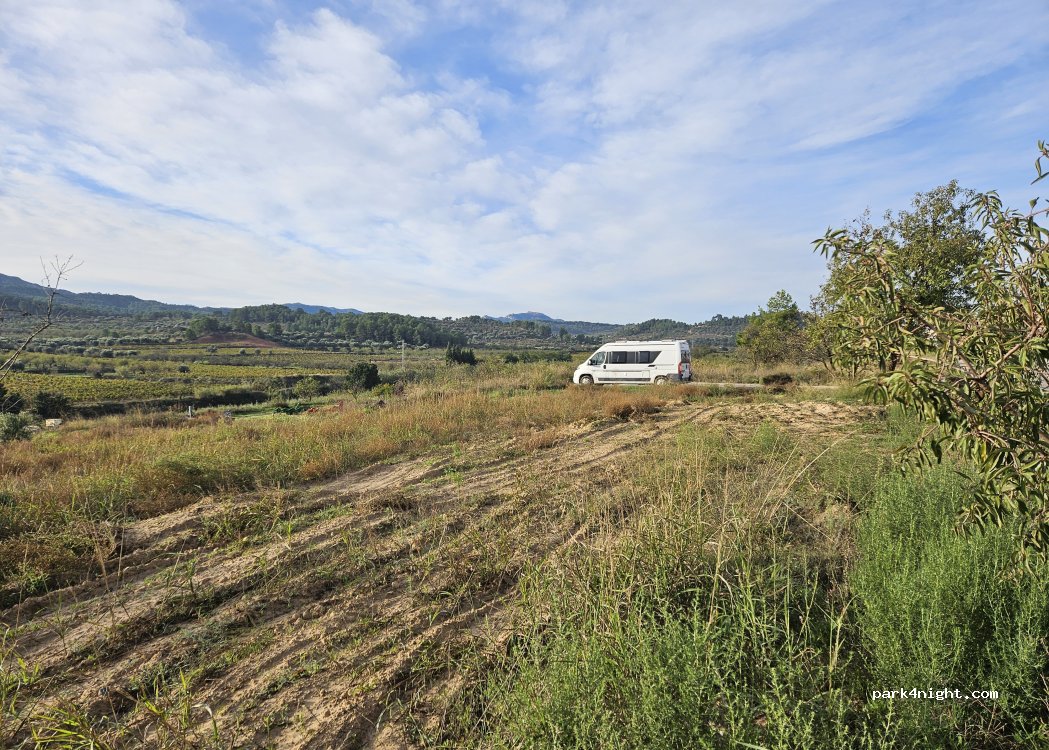 Lugar tranquilo y libre para pararse y pasar la noche. Cerca de Cordera d'Ebre. Cerca de una cafetería que está cerrada. Hay una piscina pública muy bonita cerca donde puedes nadar. Sin comodidades.