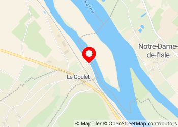 Saint-Pierre la Garenne. At a place called Le Goulet. At the edge of the Seine. Next to the restaurant "Les Canisses" (excellent). Attention: do not follow the GPS which guides you to a pedestrian tunnel or the motorhomes do not pass. Take the "rue de la gare" which goes through a level crossing. But if you stay overnight, you won't be able to leave before 6:30 a.m. The level crossing is manual, always closed, and only opens when you show up. There are a few trains that run from time to time, but otherwise it's very quiet.