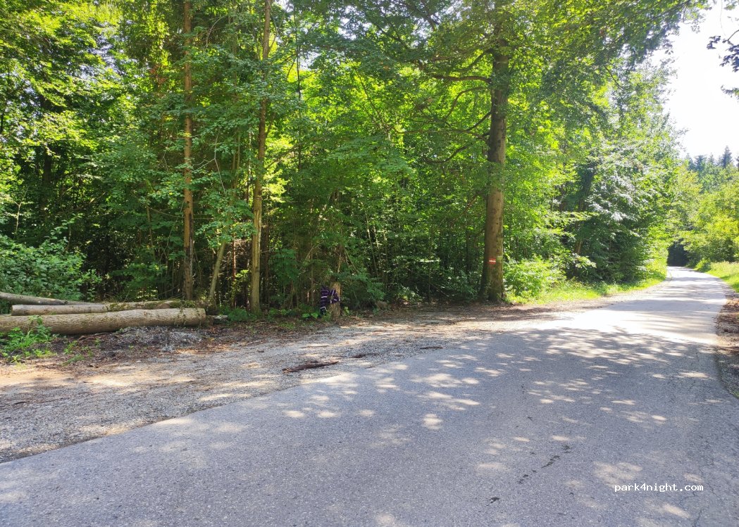 Small hiking car park in the forest on a small road. Optimal starting point for hikes and bike tours. Table and bench with rubbish bin available. We were the only car there, every now and then a few hikers would pass by.