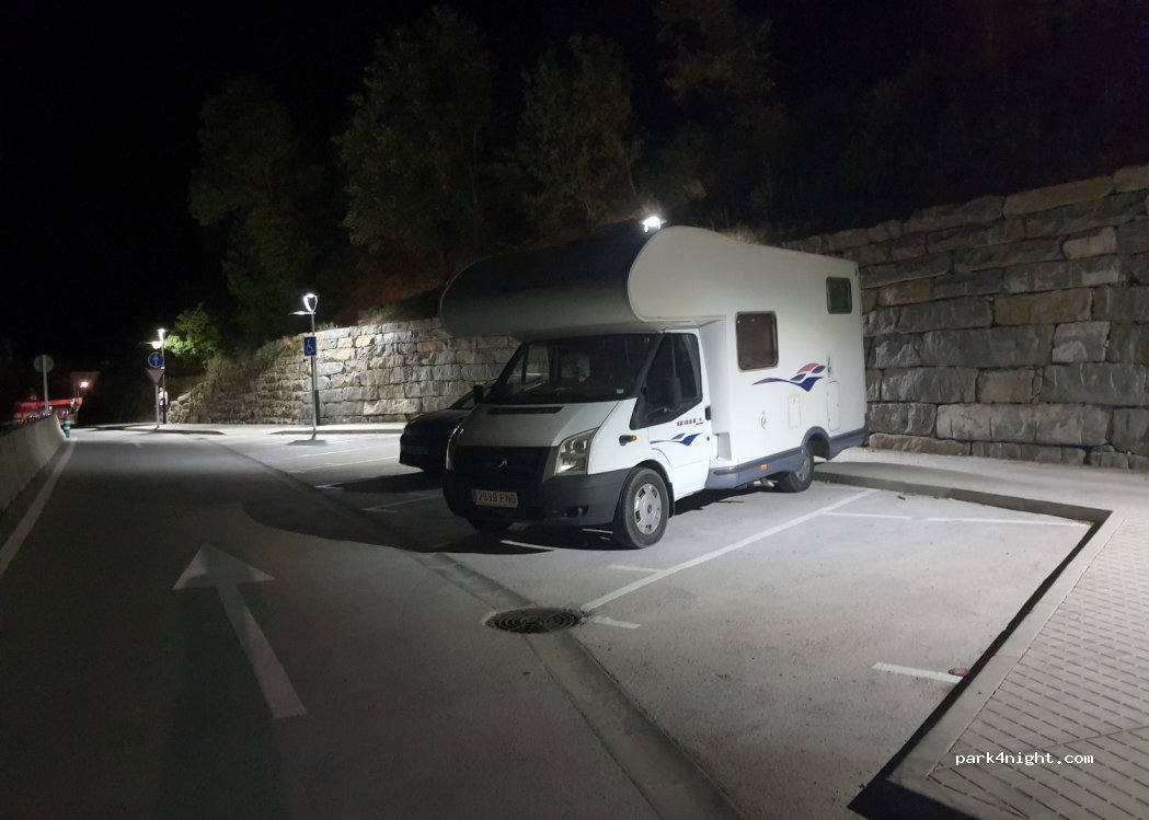 Nous avons passé 1 nuit sur ce parking avec notre van. Pas de panneaux qui indique que c'est interdit contrairement à tout les autre parking de Ainsa. Il y a des lampadaires et nous n'avons pas eu de problème.