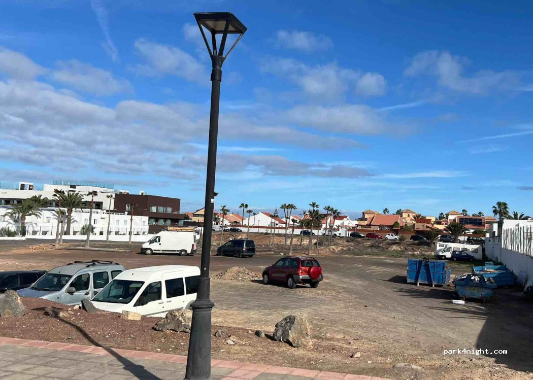 Lugar bastante tranquilo cerca del centro de corralejo y cerca del mercado el campanario + skatepark. plaza de aparcamiento de tierra con espacio suficiente para autocaravanas y furgonetas.
