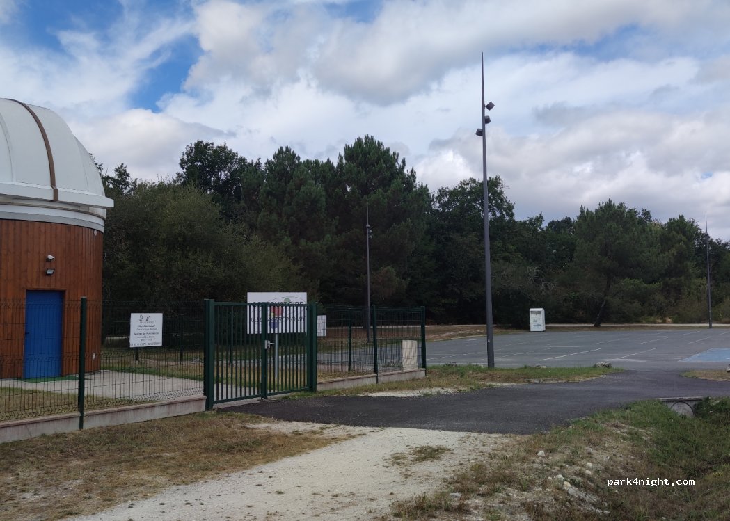 Parking calme avec des terrains de tennis ou basket foot. plus bas la rivière la jalle où l'on peut faire des ballade à pied ou en VTT.