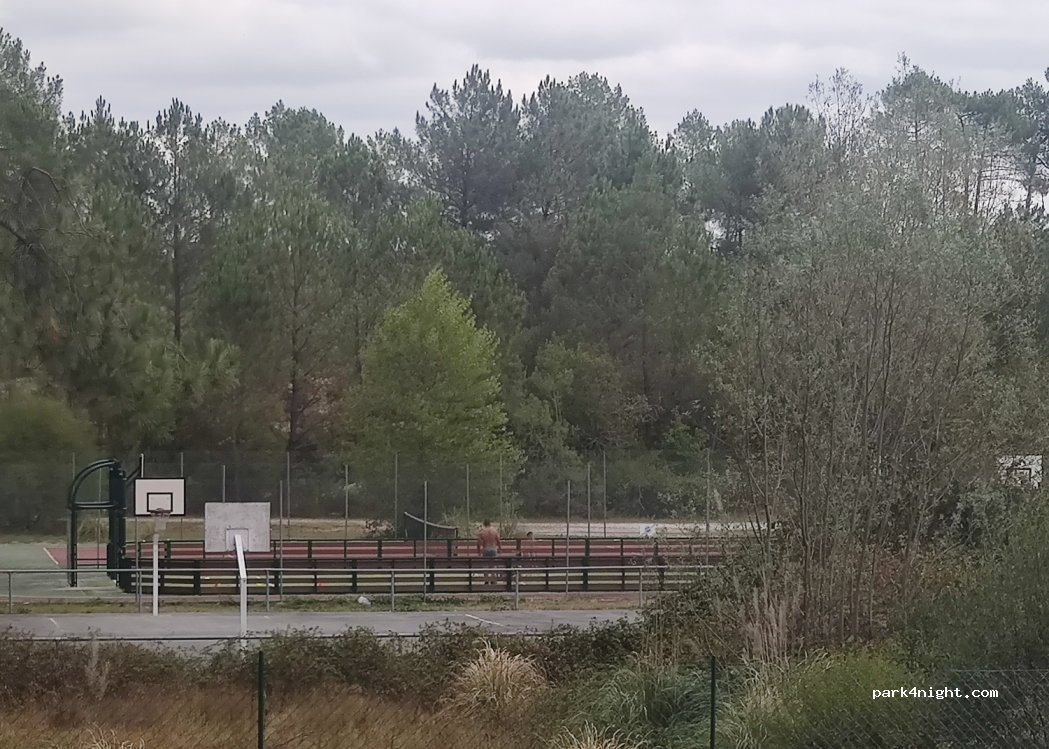 Ruhiger Parkplatz mit Tennis- oder Basketballplätzen. weiter unten in der Jalle, wo Sie Mountainbike fahren können.