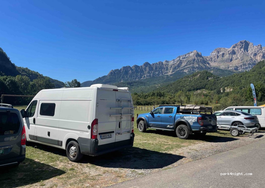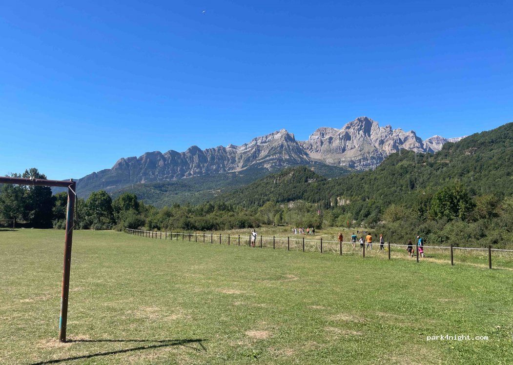 Aparcamiento con unas 10-15 plazas junto a campo de fútbol. Zona tranquila durante la noche. A la mañana punto de salida de parapentes a motor. Vistas muy bonitas