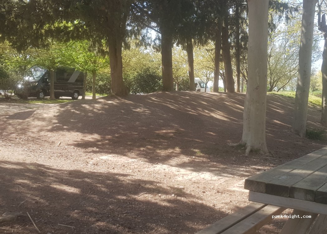 Bon spot pour passer la nuit, attention aux arrosages automatiques qui se déclenchent vers 4h30 du matin vers le fond du parking près des sapins, ça peut surprendre en pleine nuit et vous faire changer de place car bruit d'eau sur la carrosserie