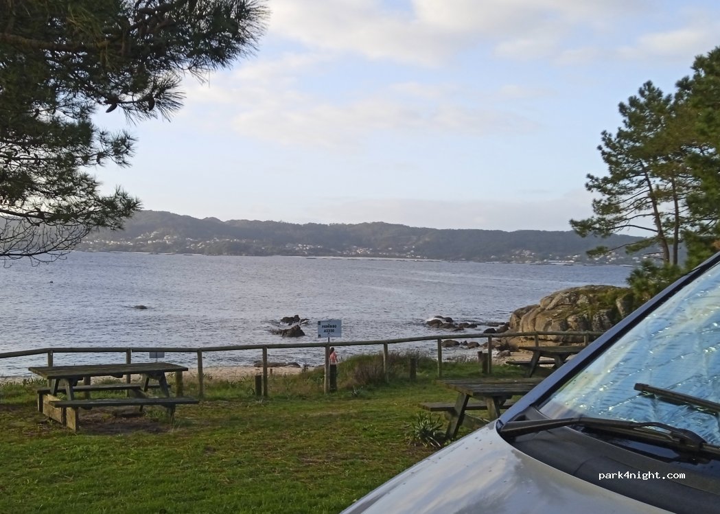 Parking de 4 places juste en face de la plage de l'Area de Bon, à côté d'une aire de pique-nique. Ce n'est pas tout à fait niveau mais pour y passer une nuit ça vaut le coup. Ensuite, 50 m. avant, il y a un grand parking mais avec plus de dénivelé. Dans le parking qui est à 2 km. Plus au nord, il y a des panneaux interdisant les nuitées. Nous n'en avons pas vu ici, il est donc important de prendre soin et de garder le site propre, en étant discret.