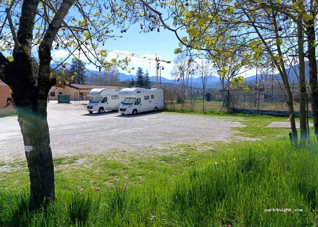 L’area è un semplice piazzale subito fuori le mura alle spalle dei campi sportivi. Considerando la situazione attuale di Norcia è già tantissimo avere uno spazio così. Grazie!