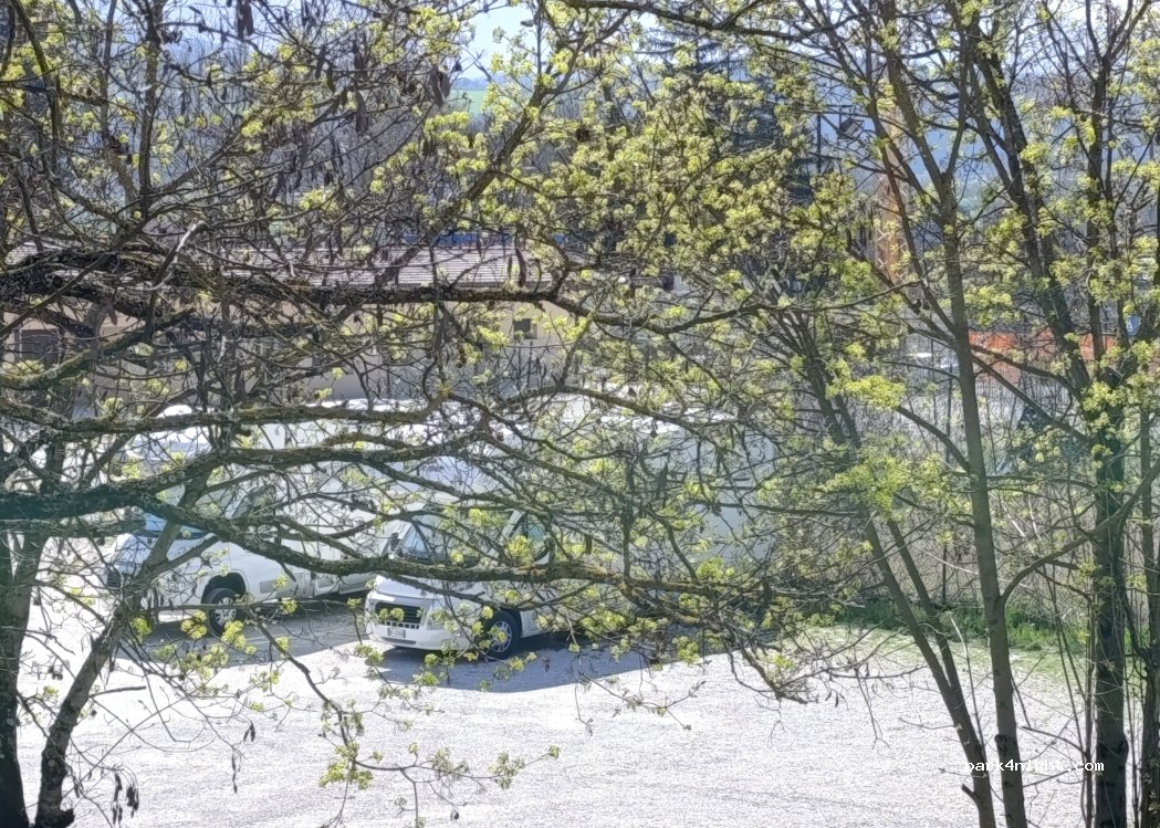 Keine Dienstleistungen und Gratis. Am Strasserand möglich zu parkieren, unten am Abhang hats auch in der Sportplatz möglichkeiten zu Parken. Top Ruhige Nacht gehabt. Viele Camper.