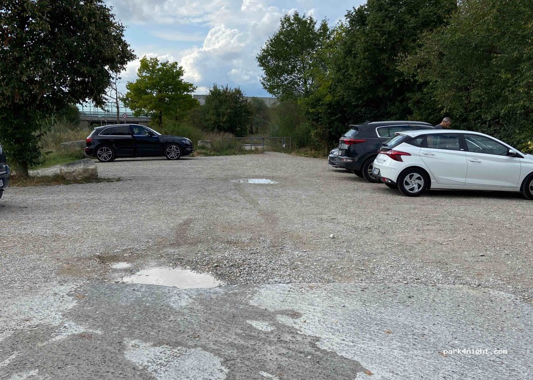 Kiesparkplatz zwischen einem kleinen Baggersee und einer wenig befahrenen Strasse. Waren das einzige WoMo (6,5m). Kein Müll, Strom o.ä. vorhanden. Am frühen Morgen (ab 6:15) kamen dann wieder Autos mit Hunden, eventuell früh genug wegfahren, dass man noch rausrangieren kann.
