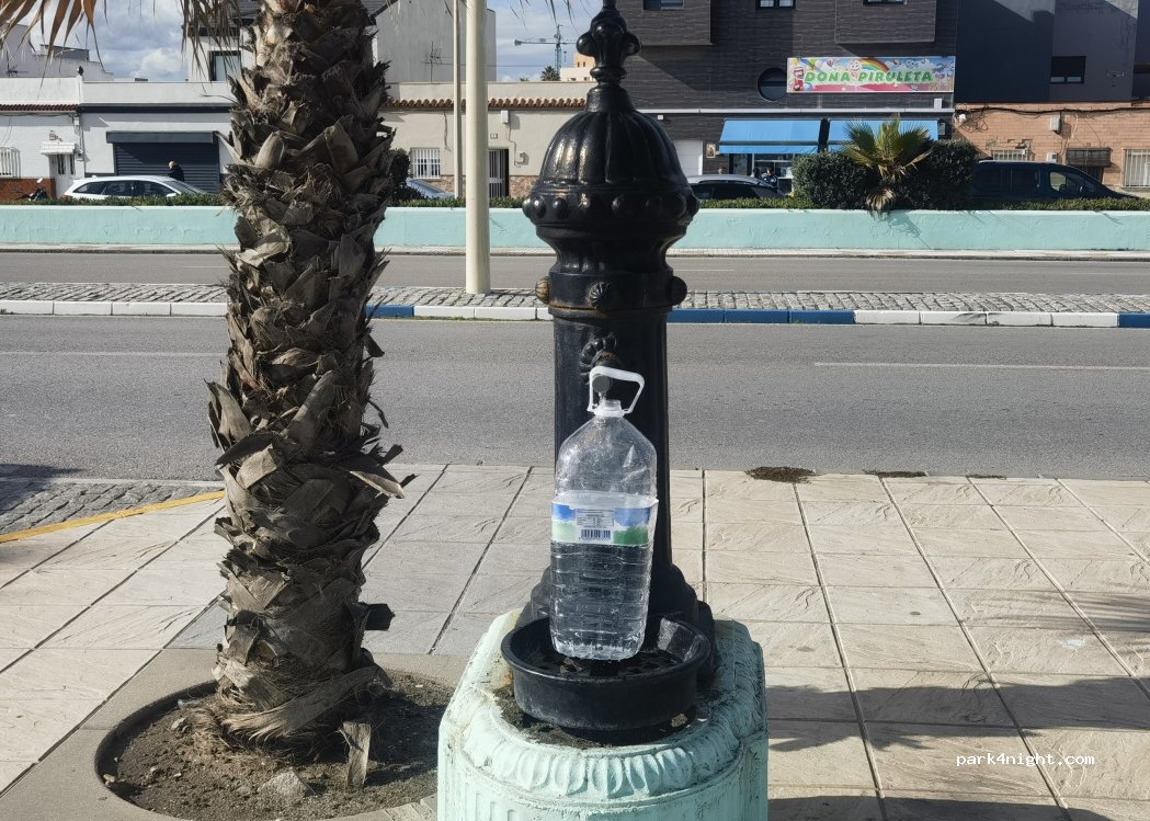 Parking directly by the sea. Ideal for overnight stays, as the beach empties out in the evening. Traffic is quite noisy throughout the night, as it's right on the street. There are showers and a jetty across the sand to the sea. A water fountain is located on the sidewalk near the disabled parking spaces.
