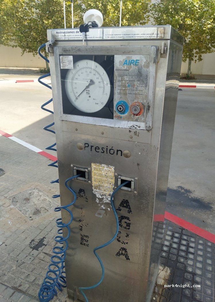 Gas station of a Carrefour, free filling of water and pressurized air (water and air 24h, gas station and Carrefour normal hours).