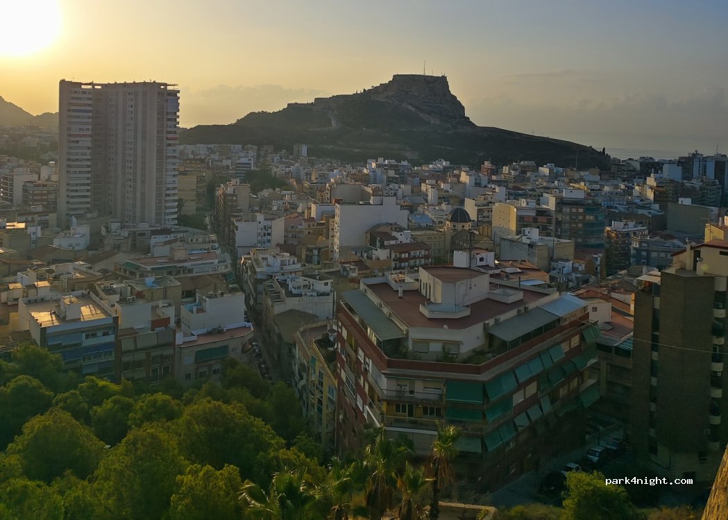 Emplacement sur les hauteurs d'Alicante, le parking est petit et il n'y a pas beaucoup de places disponibles. Quelques fois des teffeurs viennent au petit matin pour continuer leur Fiesta.. Mais plutôt bien situé pour aller visiter la ville ou avoir un point de vue sur l'horizon avec le parc un peu plus haut. Je recommande pour 1 nuit .